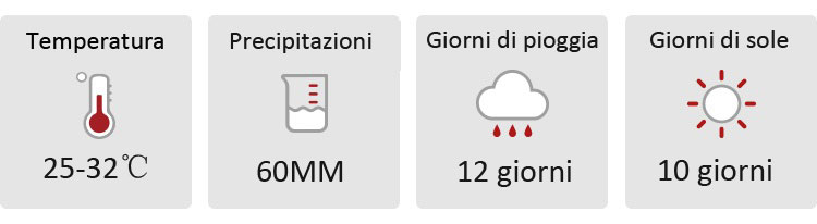 - Temperatura media: 25–32°C